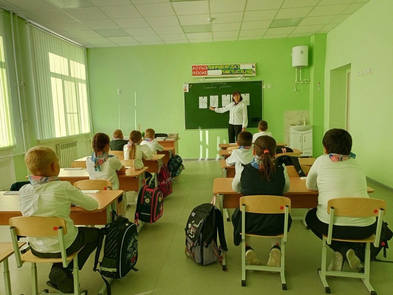 Новая учебная неделя началась с общей линейки, исполнения гимна РФ, объявления планов на неделю.