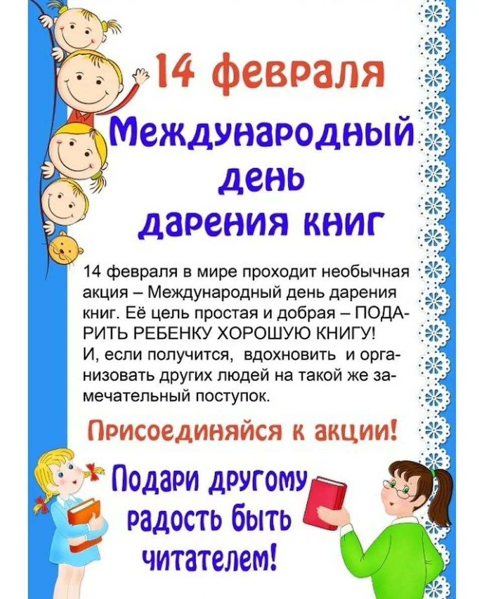 Международный день книгодарения отмечается ежегодно 14 февраля.